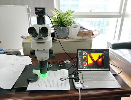 今天給大家介紹一種比較實用的朱墨時序檢驗的方法:激發(fā)熒光和透射白光的視頻顯微鏡檢驗法。在特定波段的光照下,印章的印油油墨會發(fā)出強烈熒光,而打印,手寫字跡不發(fā)熒光,從而能夠通過目鏡觀察朱墨交叉處熒光狀態(tài),并且通過顯微鏡相機拍攝朱墨交叉處熒光狀態(tài),從而能夠更可靠地識別印章印文與字跡的形成先后順序。這種方法對含有熒光物質(zhì)的印油的朱墨時序檢驗來說,直觀、簡單、實用。