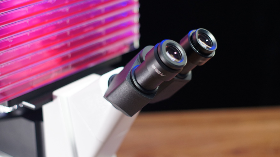 MI52-CF采用優(yōu)良的無限遠光學系統(tǒng),具有工作距離長、光通效率高等優(yōu)點,能清晰觀察到最底下兩層細胞工廠的培養(yǎng)情況,標配22mm高視場數(shù)目鏡,成像清晰銳利,視野寬廣,如有需要還能升級數(shù)顯熒光模塊,實現(xiàn)熒光觀察。