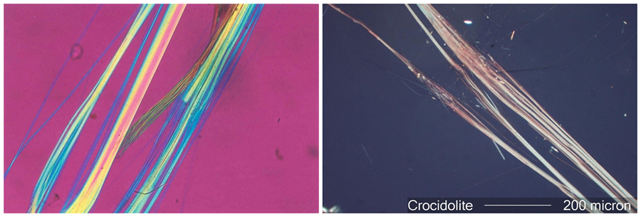 角閃石類(lèi)礦物石棉(左鐵石棉Amosite,右青石棉Crocidolite)