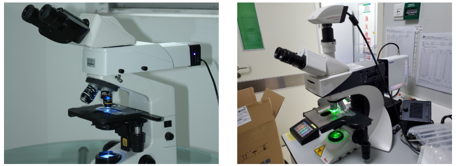 根據(jù)上述光學(xué)顯微鏡對(duì)病毒的檢測(cè)方式,主要有兩種方式,一是使用熒光顯微鏡檢測(cè)熒光染料標(biāo)記病毒本身的熒光信號(hào)或入侵細(xì)胞免疫反應(yīng)產(chǎn)生抗體物質(zhì)熒光信號(hào),二是使用明場(chǎng)方式觀測(cè)IHC或者HE染色的細(xì)胞或組織的病理形態(tài)。