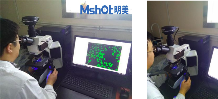 明美自主研發(fā)的LED熒光模塊及科研級大靶面顯微鏡相機(jī)MSX2走進(jìn)湖北武漢協(xié)和醫(yī)院,助力免疫熒光檢測。因受到顯微鏡功能單一的限制,醫(yī)院原有的奧林巴斯生物顯微鏡無法投入免疫熒光檢測中使用,明美銷售工程師帶著一套物美價廉的方案來到醫(yī)院,完美的解決了這一難題,為原奧林巴斯生物顯微鏡,升級LED熒光附件,即搭配廣州明美自主研發(fā)的熒光模塊MF-BGUV-LED和1250萬像素成像系統(tǒng)MSX2-H,熒光、明場隨意切換。本次改造方案,在不改動顯微鏡的情況下,很好的解決了醫(yī)院的實際需求,成本大大降低,效果得到現(xiàn)場醫(yī)生的高度贊揚與肯定。