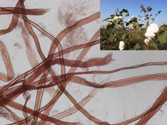 金相顯微鏡下棉花纖維縱面呈扁平帶狀,有天然轉(zhuǎn)曲