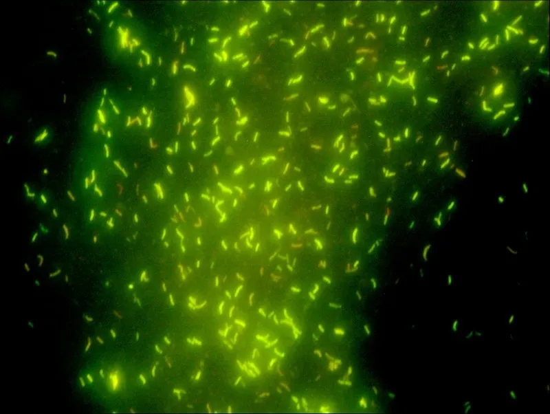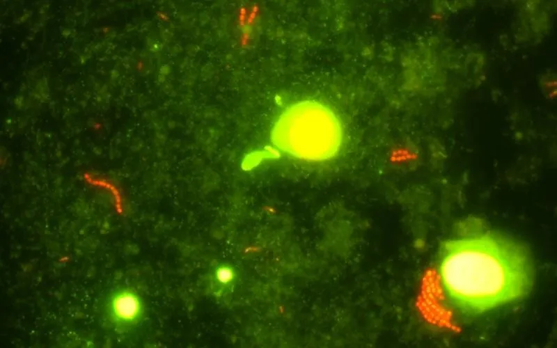 熒光觀察下的念珠菌。念珠菌感染是一種常見且具有潛在危害的疾病,為了預(yù)防,建議保持良好的個(gè)人衛(wèi)生習(xí)慣,增強(qiáng)身體抵抗力。