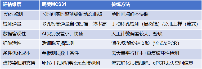 面對(duì)傳統(tǒng)方法的桎梏,明美活細(xì)胞掃描分析儀 MCS31應(yīng)運(yùn)而生。明美活細(xì)胞掃描分析儀MCS31將動(dòng)態(tài)成像、高通量掃描與AI分析深度融合,為轉(zhuǎn)染效率評(píng)估開(kāi)辟了全新的維度,實(shí)現(xiàn)了從“靜態(tài)終點(diǎn)盲測(cè)”到“動(dòng)態(tài)全程可視智能分析”的跨越。