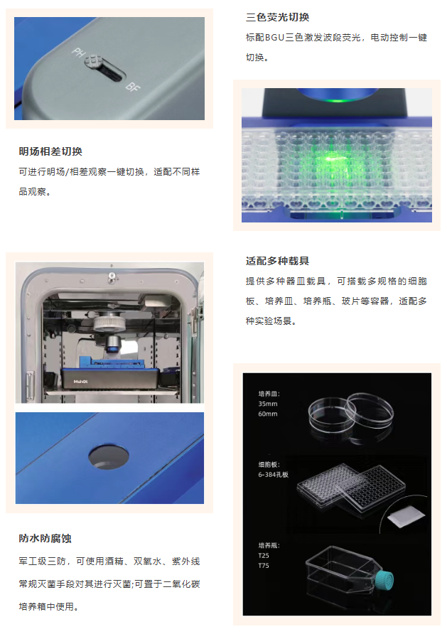 同時配套軟件分析功能,可對細胞劃痕實驗、熒光轉(zhuǎn)染實驗、細胞活率、細胞匯合度等數(shù)據(jù)進行分析,也可以通過AI軟件智能訓(xùn)練專項功能,滿足特定化實驗分析需求。